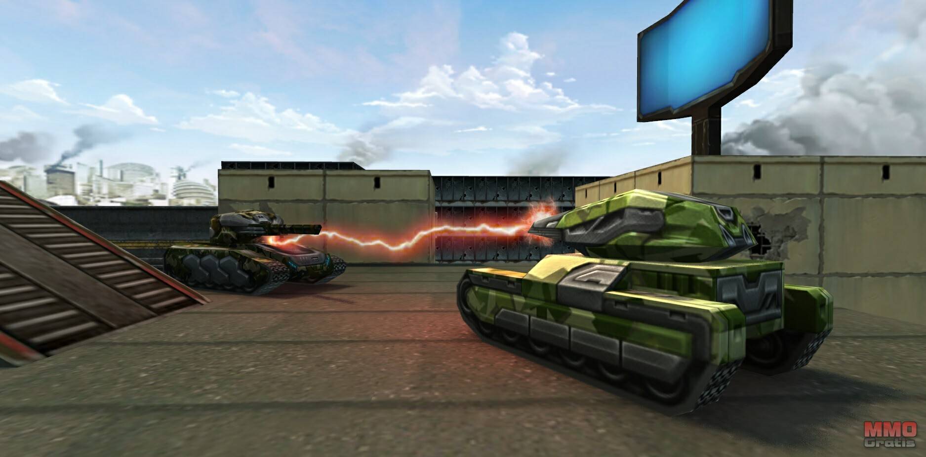 Armas - Los jugadores pueden escoger entre 9 torretas distintas, dependiendo de tu estilo de juego favorito. Por ejemplo, algunos jugadores escogen el arma Railgun para hacer el máximo daño en un solo disparo, mientras que el arma Firebird se usa para quemar a sus enemigos desde cerca.