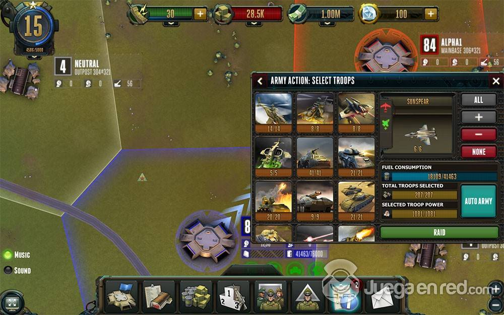 Las unidades que creas cuentan con mecánicas de piedra-papel-tijera, por lo que hay que elegir sabiamente las que mandar a conquistar. Hay espías para conseguir información extra de territorios específicos, edificios, unidad, etc., aunque pueden ser capturados, lo que te deja en una situación delicada.