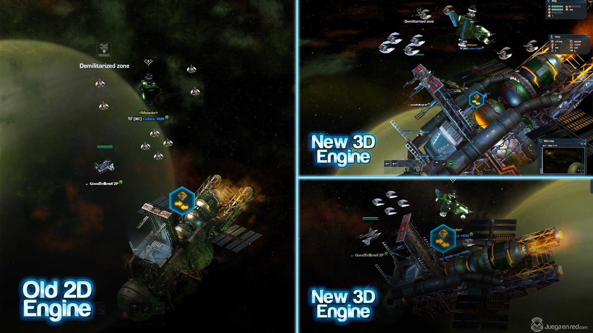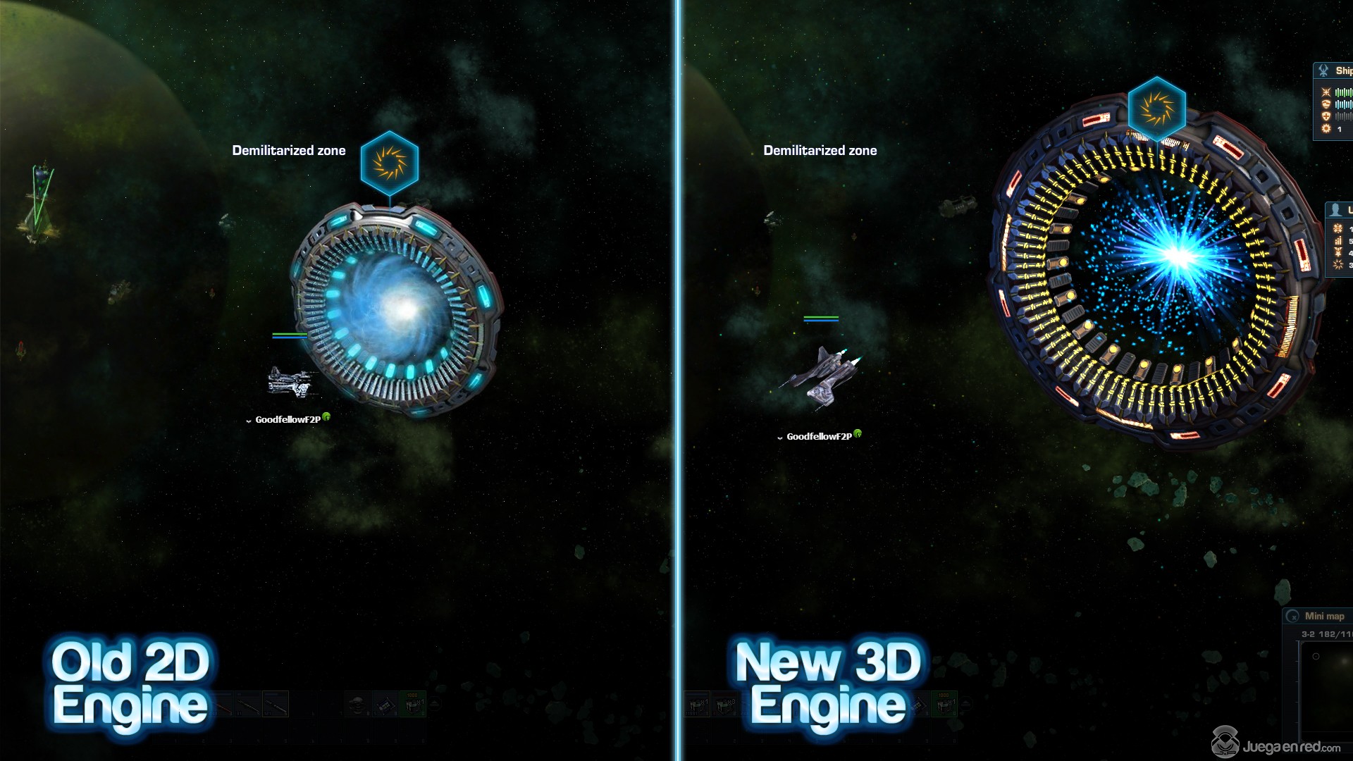 Hace unos días DarkOrbit Reloaded fue mejorado por un nuevo motor gráfico que actualizado todos sus modelos, que ahora son 3D, lo cual hace que el juego sea mucho más inmersivo y visualmente espectacular. Antes de esta mejora el juego era 2D y tenía una perspectiva isométrica, y creaba la ilusión de profundidad superponiendo distintas imágenes planas. Ahora, con los nuevos modelos 3D podemos hacer zoom y disfrutar de una perspectiva que se asemeja más a la vista en tercera persona, lo que añade más profundidad al juego, y nos permite ver como las naves se mueven desde distintos ángulos. Sin embargo el juego no ha cambiado que solo podamos movernos por el eje XY.