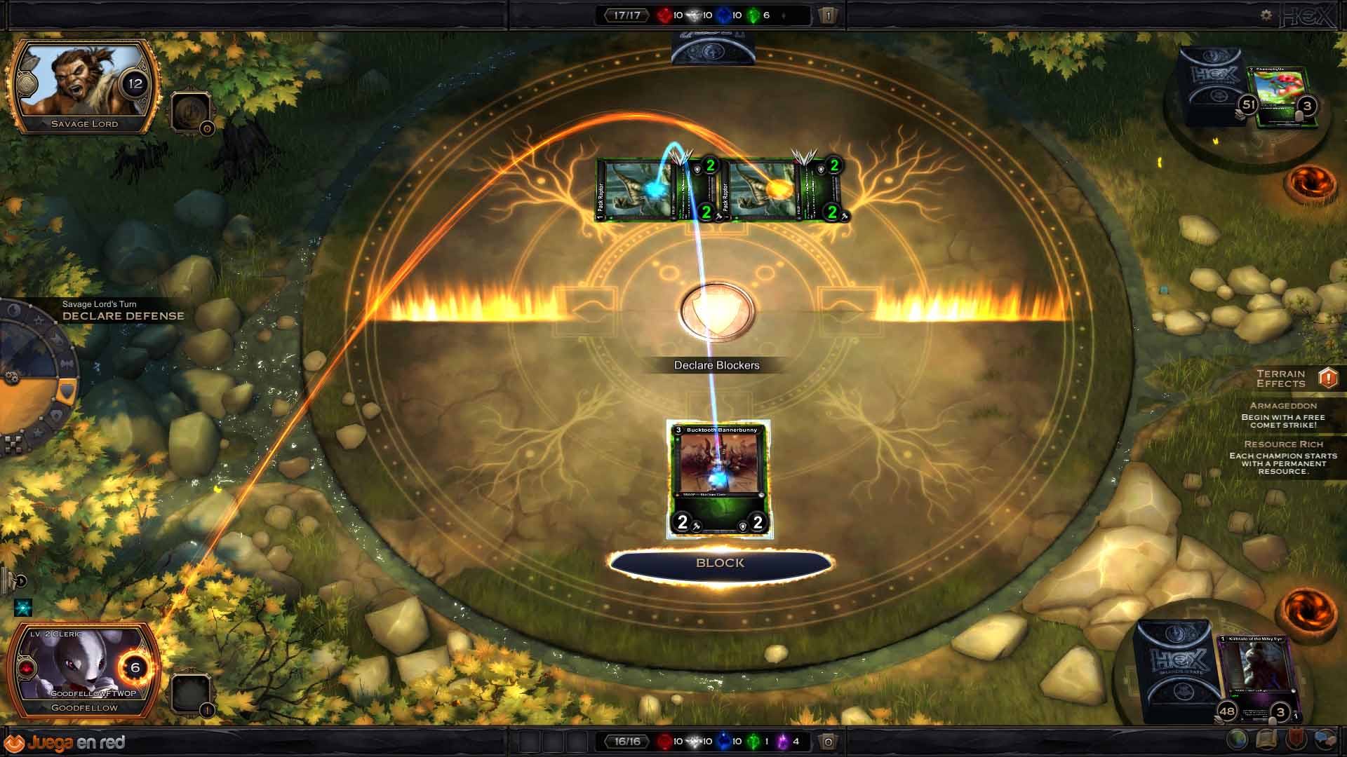 En HEX: Shards of Fate los jugadores pueden luchar en emocionantes y desafiantes batallas de cartas estratégicas, usando mazos personalizados formados usando una enorme selección de tropas, hechizos, acciones y artefactos. Con tu mazo te enfrentarás a jugadores de todo el mundo, y contra la habilidosa IA.