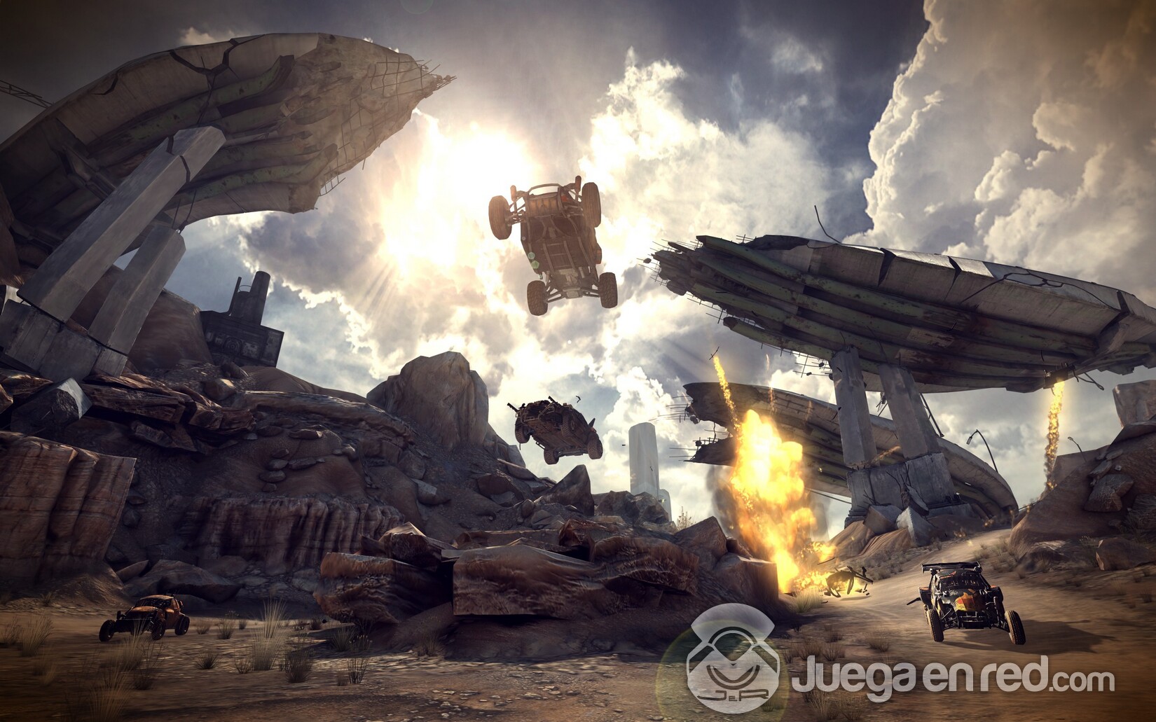 Como siempre, no vamos a explayarnos en el modo de un solo jugador, sino en la vertiente multijugador online del título. En este sentido, ya os avisamos que con Rage podéis olvidaros de encontrar una jugabilidad como la anteriores títulos de iD. Y es que en Rage tan solo encontraremos dos opciones posibles: Un modo de misiones cooperativas para dos jugadores y otro de acción arcade al volante de los buggies que podremos controlar en la campaña de un solo jugador.
