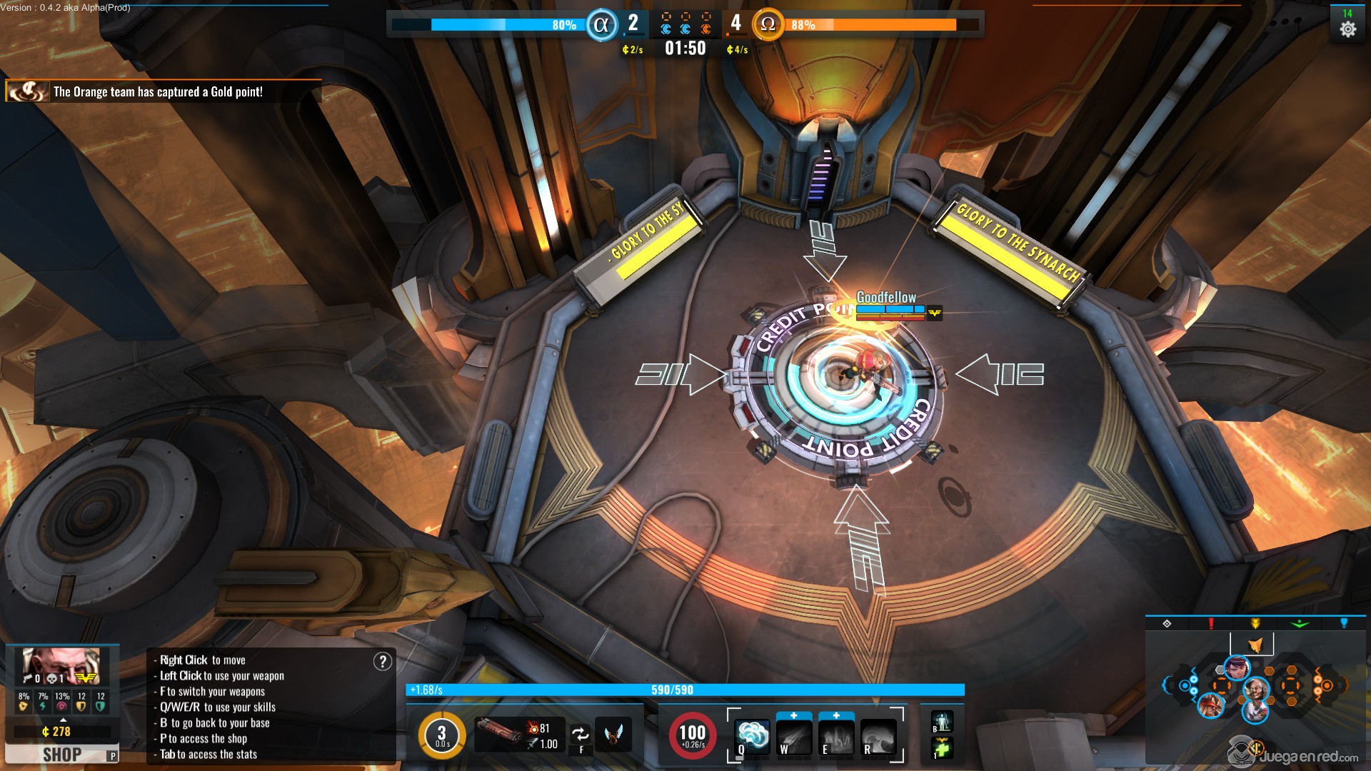 Una de las características que más nos gustó es que al activar los tres puntos de control estos se cierran, pudiendo quedarte encerrado dentro. Dentro de los puntos aparecen oleadas de esbirros (muy letales a niveles bajos) que dan bastante experiencia y créditos, aunque es muy fácil morir si te descuidas. Una cosa muy graciosa que nos paso es que el personaje que controlábamos tenía la habilidad de cambiar la posición con la de un enemigo, y debido a que estábamos atrapados en uno de los puntos de control la usamos con un jugador rival, y nos deleitamos al verlo atrapado y morir a manos de los esbirros.