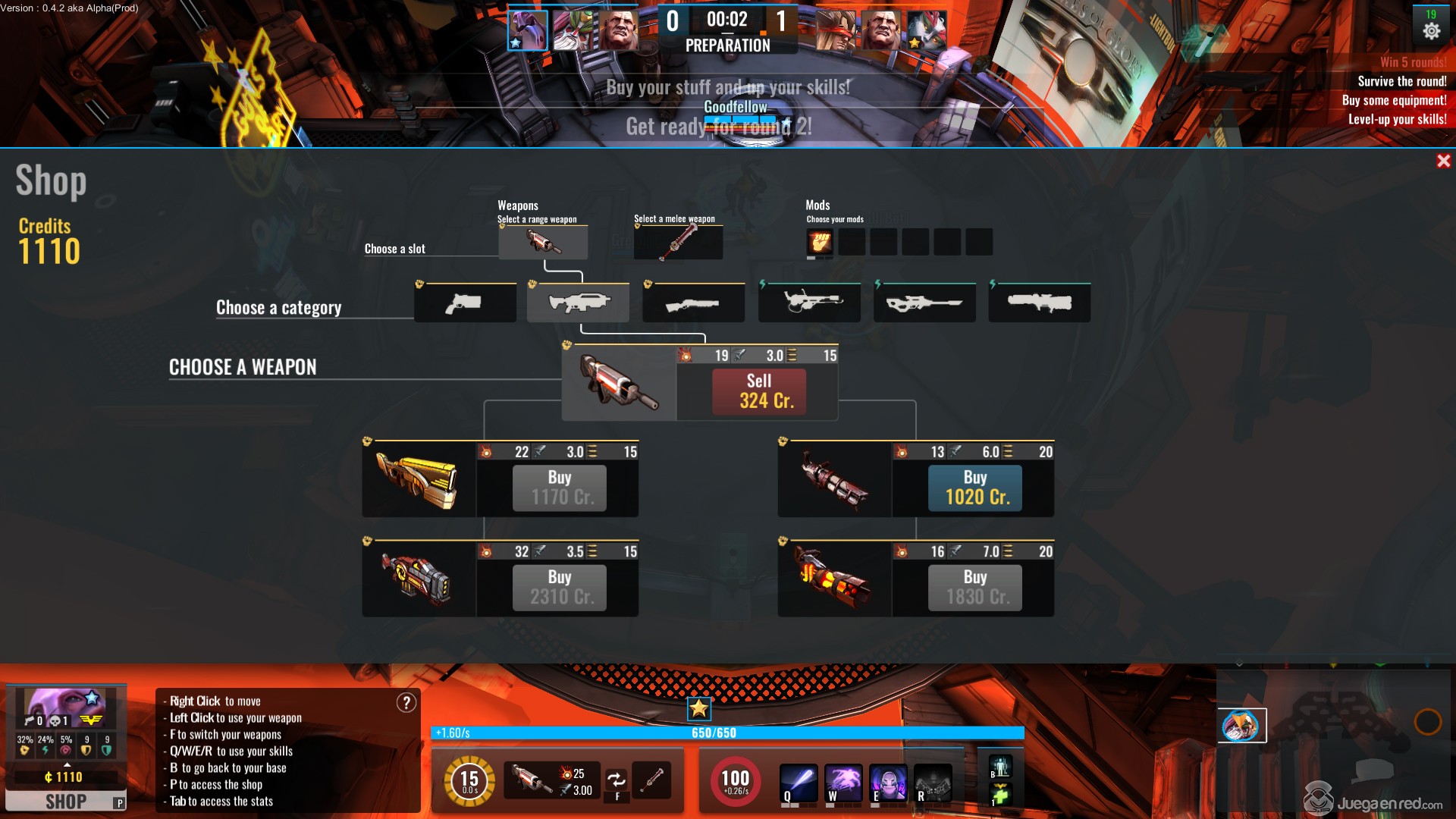 Cuando subes de nivel REALMENTE quieres quedarte atrapado en estas salas, ya que son una gran fuente de ingresos (además de varios puntos de control secundarios que proporcionan créditos al equipo que los controla). Podemos usar estos créditos para comprar armas durante las partidas, pudiendo escoger entre una amplia variedad de armas cuerpo a cuerpo y a distancia, cosa interesante pues podemos equipar a nuestros clones con un arma de cada tipo, esto nos permite combatir con un rifle, y tras quedarnos sin munición sacar nuestra hacha y repartir leña. La variedad de armas a distancia es bastante más grande ya que podemos escoger escopetas que hacen daño en área, armas automáticas con daño constante, o rifles de francotirador que son letales, pero muy difíciles de usar. Los jugadores pueden mejorar sus armas dos veces en cada partida pudiendo escoger entre versiones mejores y más poderosas en una especie de árbol tecnológico.