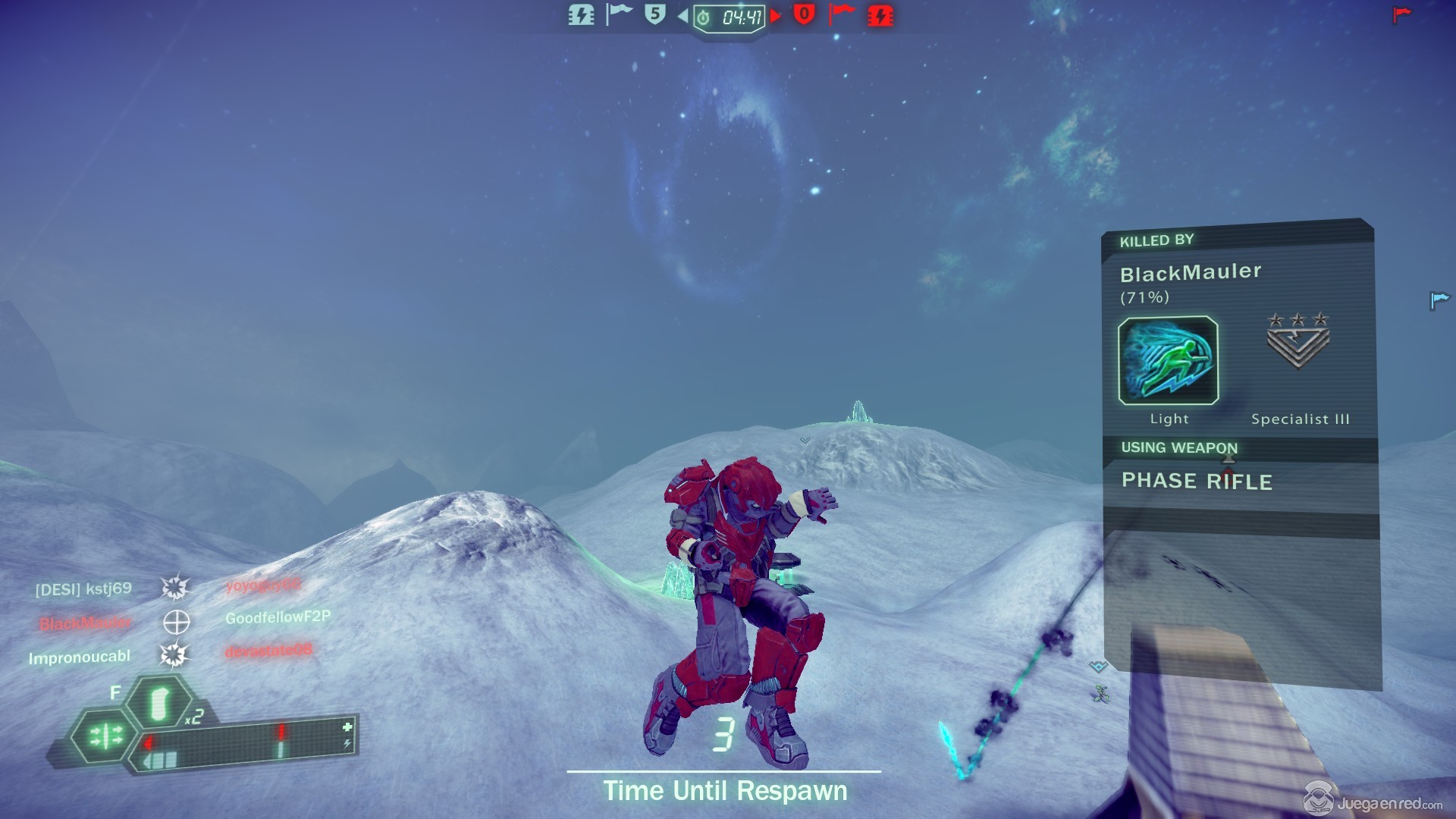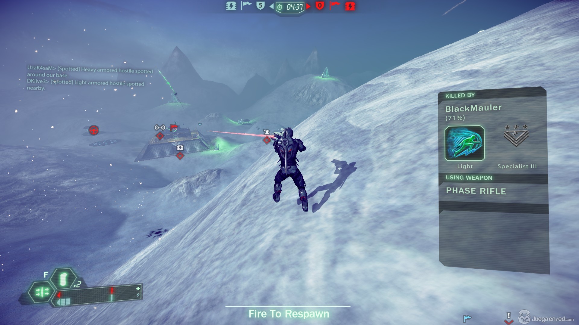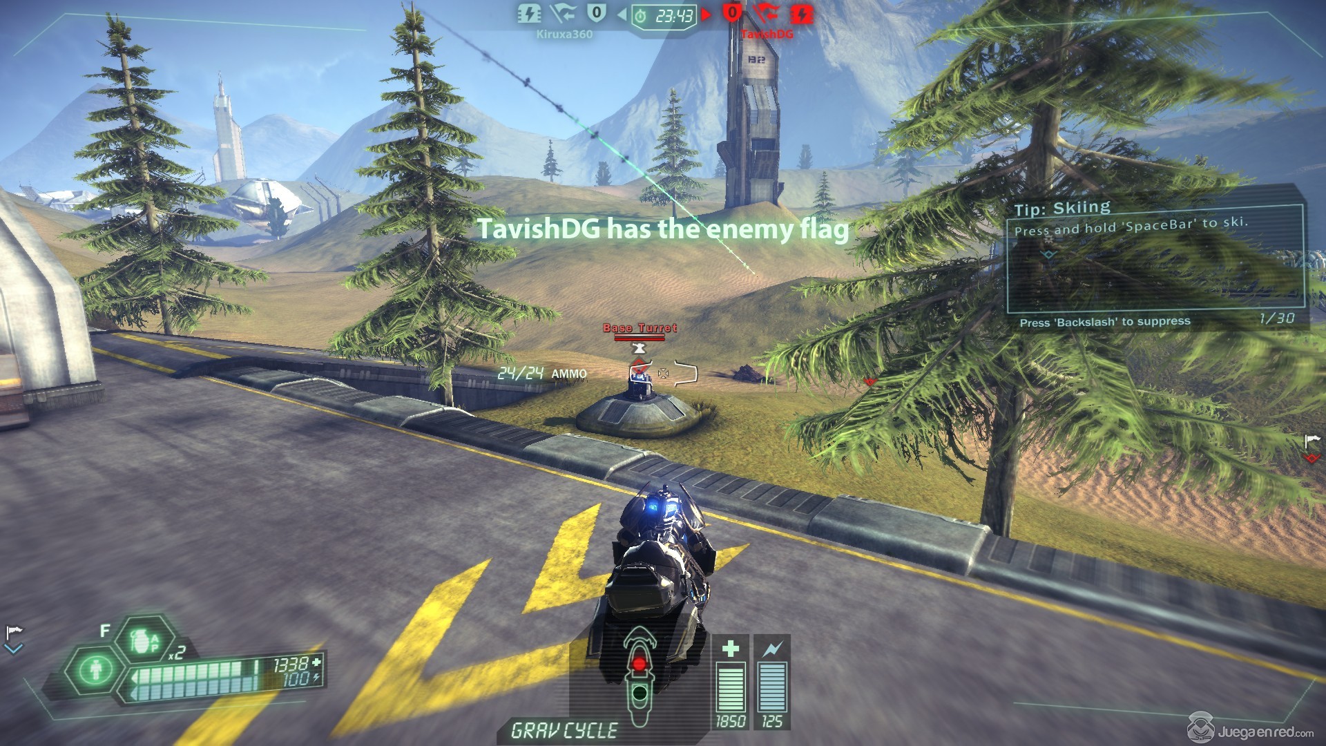 Tras probar un rato el “skiing” nos pusimos en cola para participar en una partida rápida, donde podemos escoger entre tres clases (ligera/media/pesada), y entre nueve sets de equipo nuevo (cosa que se me ha mejorado en la última actualización). La partida a la que entramos era un clásico Captura la Bandera, en el que cada equipo cuenta con 125 vidas y la partida tiene un límite de 25 minutos. En el modo de Captura la Bandera cada equipo consigue puntos por robar y mantener la bandera del equipo rival (en lugar de puntuar al conseguir devolverla a nuestra base). Desafortunadamente en estas partidas los jugadores van entrando de forma escalonada, lo cual puede desequilibrar las partidas fácilmente, sin embargo, al finalizar una partida, todos los jugadores de esa partida irán juntos a la siguiente, lo cual soluciona en parte este problema.