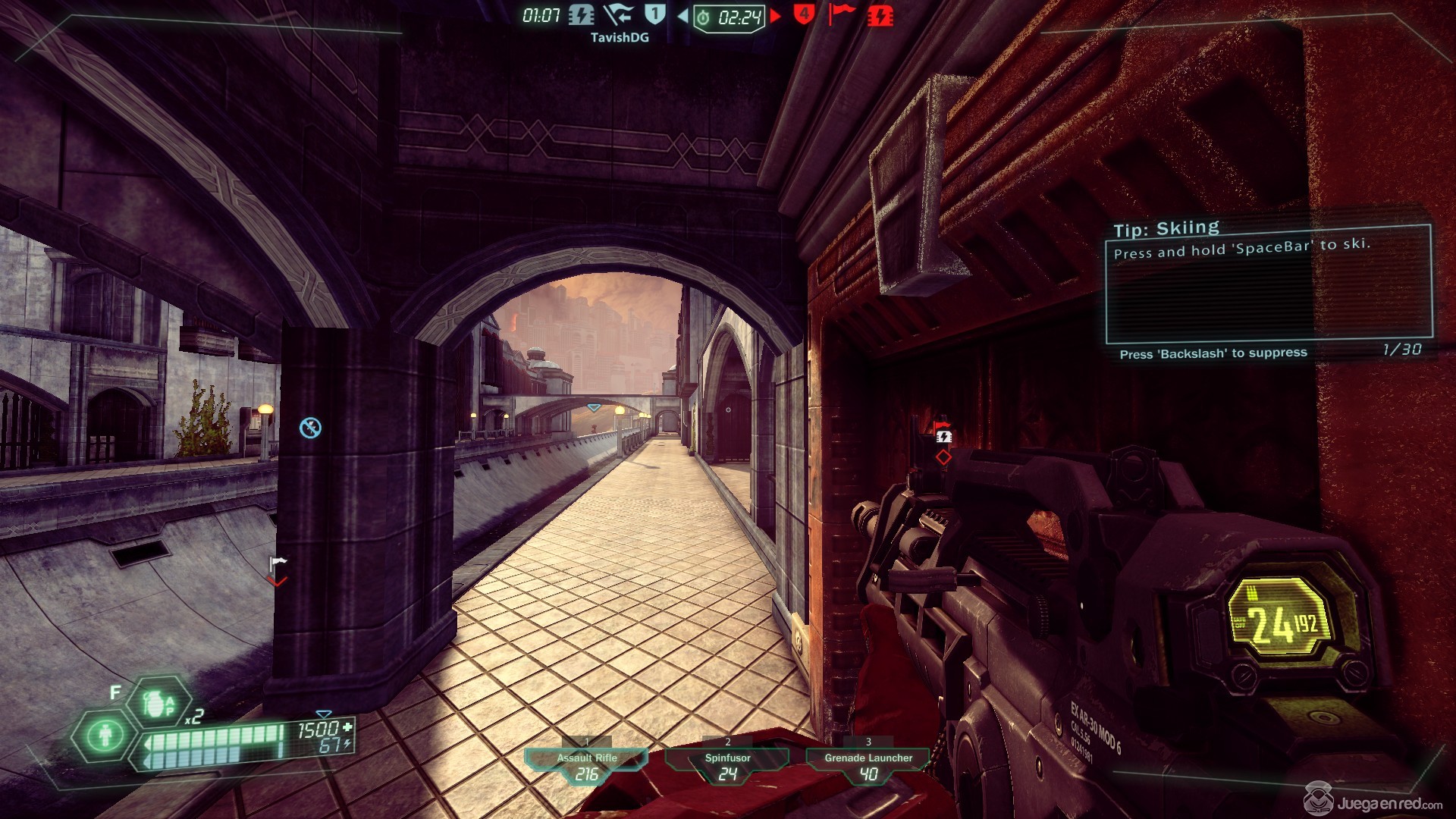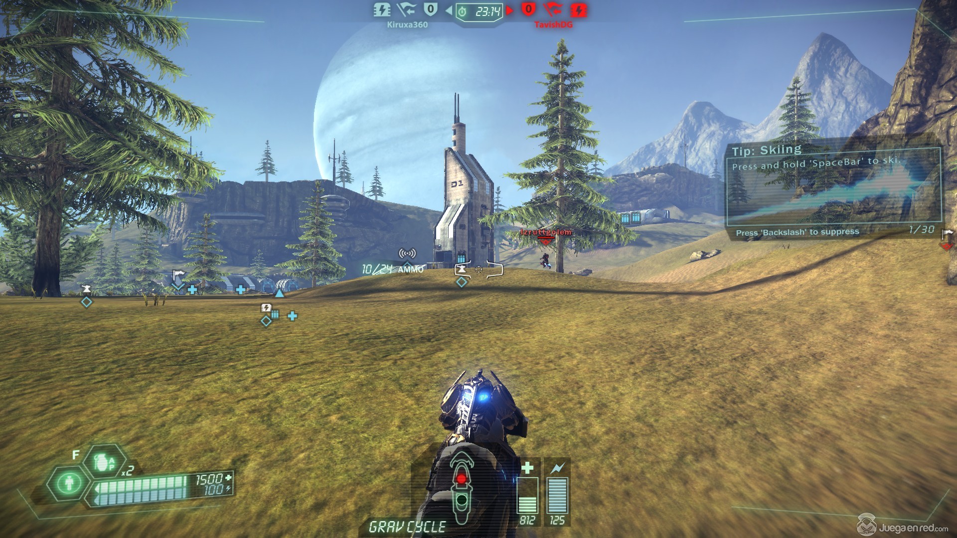 El tutorial del juego es bastante estándar respecto a lo que podríamos esperar de un shooter en primera persona, a excepción de una mecánica única del juego, el “Skiing”, que esencialmente nos permite esquiar y movernos a gran velocidad usando pendientes para ir más rápido; además los personajes disponen de un Jet Pack que les permite alcanzar cotas más altas y ejecutar un montón de maniobras distintas. En el juego nos moveremos usando WASD y apuntaremos/moveremos la cámara usando el ratón.