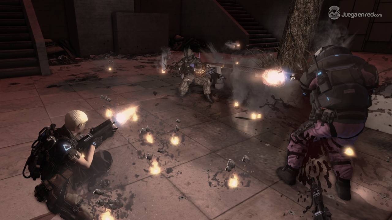 Los controles responden a la perfección y los combates son emocionantes, dos aspectos que son, probablemente, los más importantes en un juego de disparos competitivo. Sin embargo la destreza de cada jugador importa mucho en Blacklight, ya que puedes matar a muchos jugadores de nivel alto con tu arma inicial. Su estilo mezcla la acción con la táctica, por lo que si sales corriendo como un loco acabarás muerto en el suelo. Hay varios modos de juego disponibles pero a través de la búsqueda de partidas automática solo probamos el Team Deathmatch y una variante por equipos de Last Man Standing sin posibilidad de revivir. Para jugar a los otros modos hay que buscar las partidas manualmente, y aunque lo intentamos, no parecía haber gente dispuesta a ello. Los mapas son grandes y están bien diseñados, con muchos tipos de zona diferentes para utilizar diferentes tácticas.