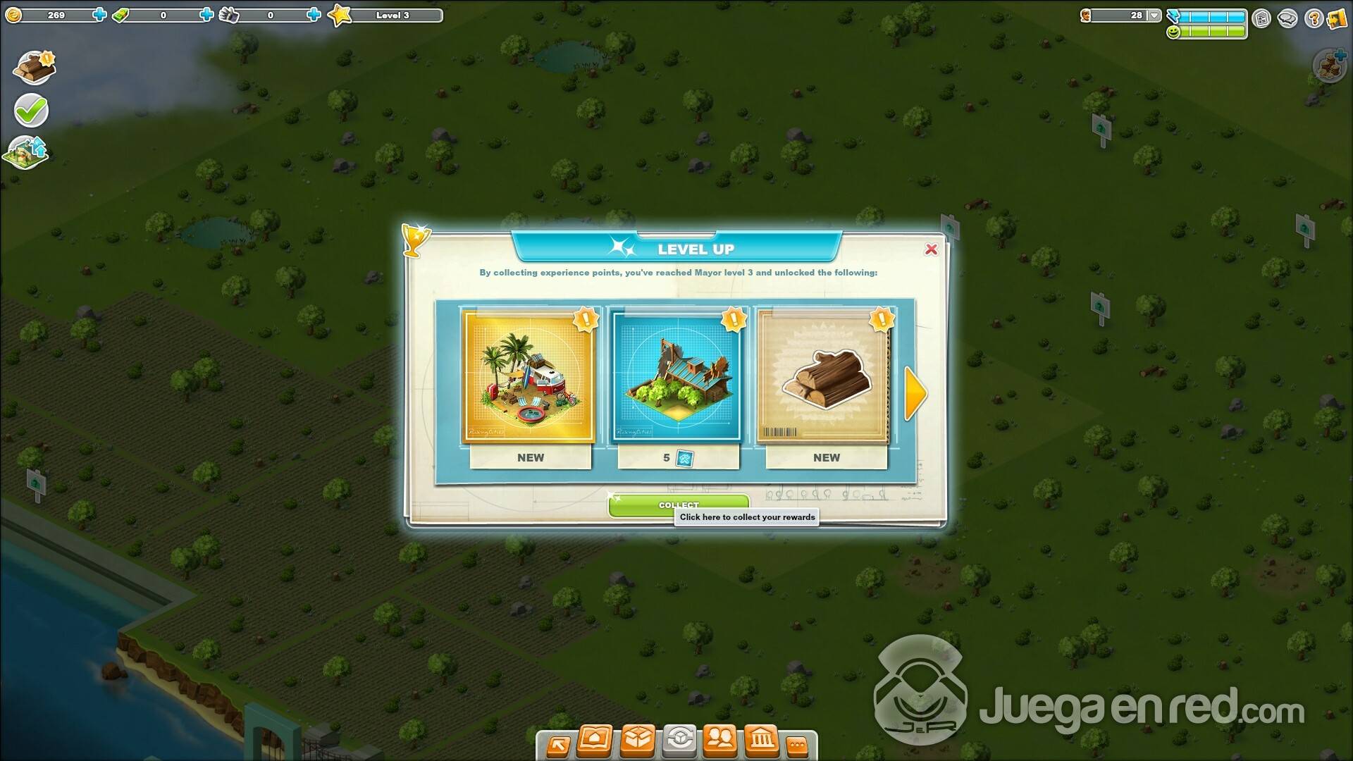 Para probarlos nos registramos a traves de Facebook, cosa que nos tomo muy poco tiempos, y no mas de un par de clics. En cuestión de segundos, habras empezado el juego, donde podrás empezar una nueva vida, cómo el alcalde de una ciudad con pocos habitantes, pocos recursos y unas calles vacias. Tu tarea será transformar el pequeño pueblucho en una rica y exitosa ciudad.