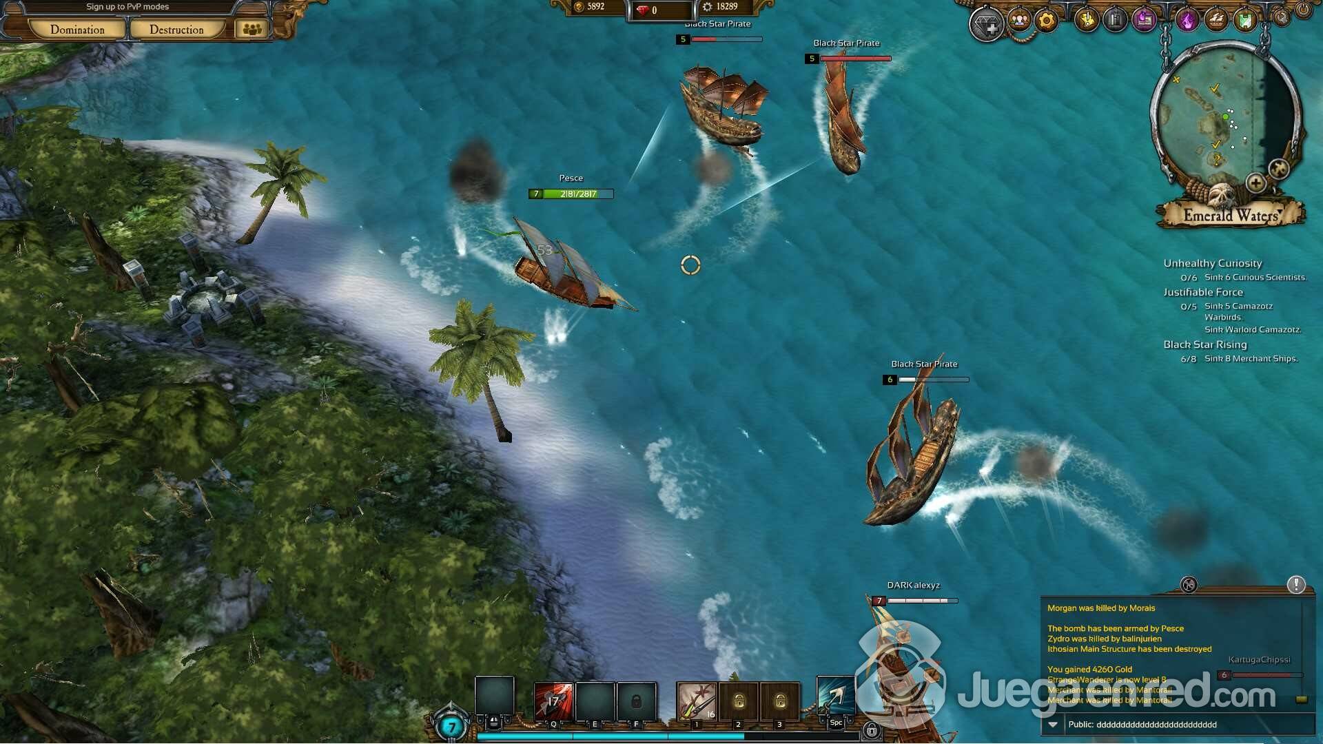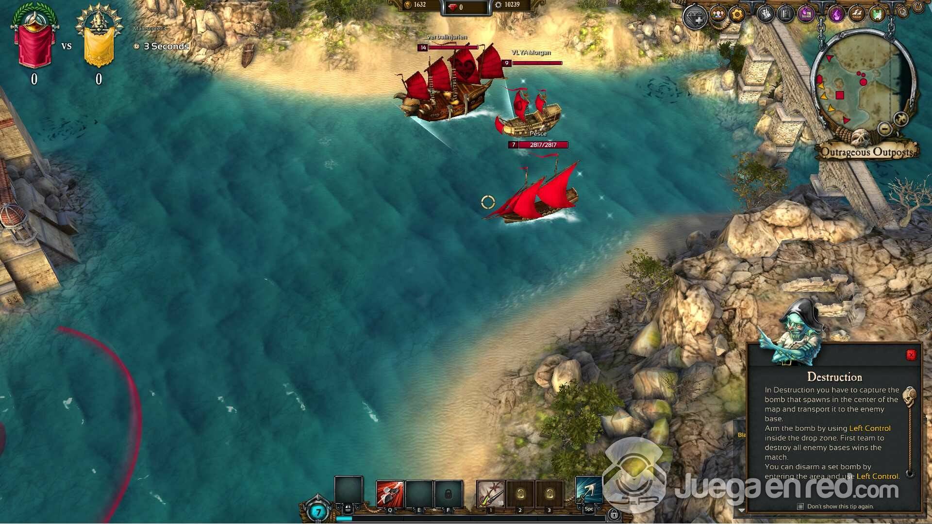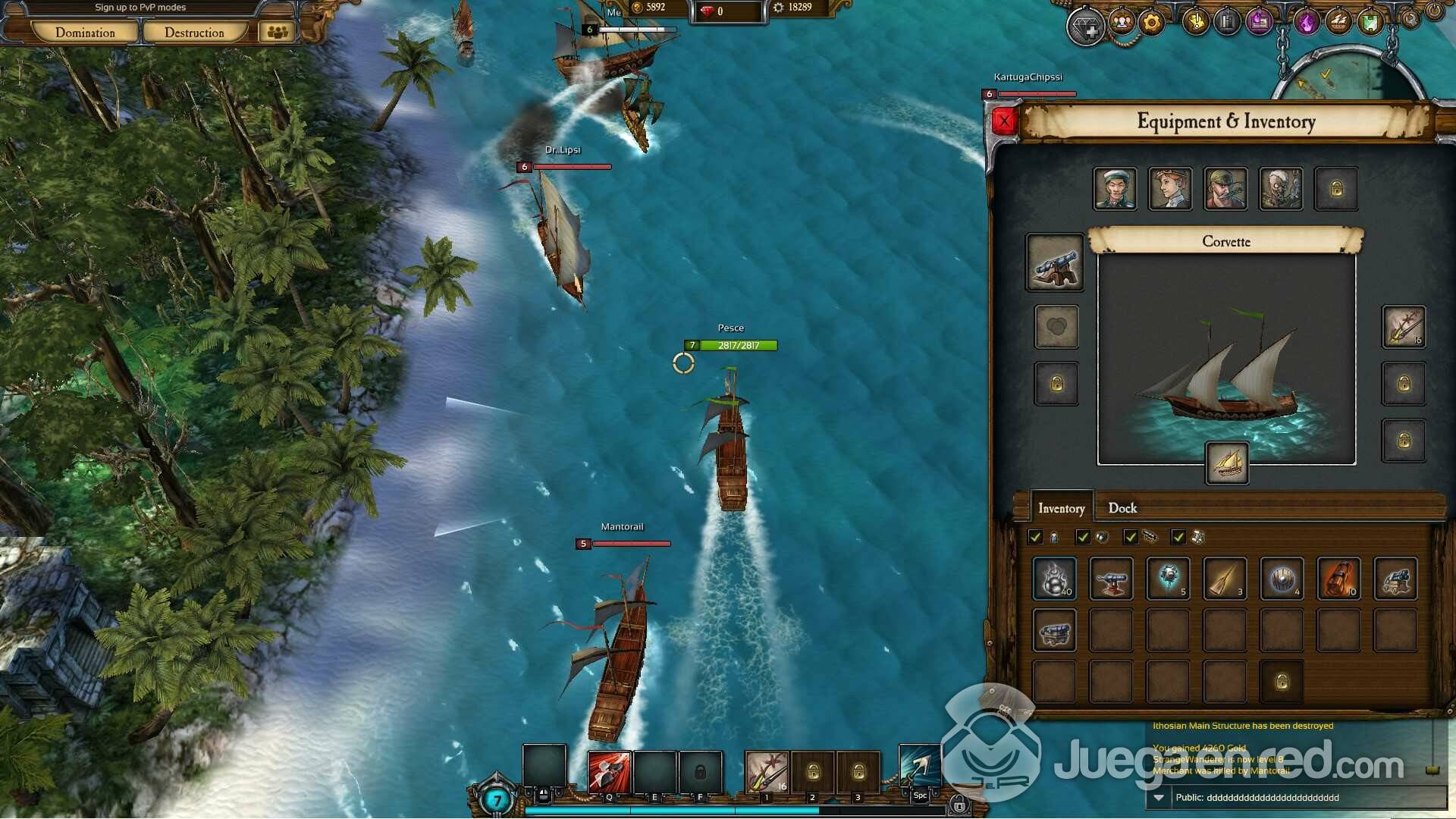 A algunos quizá os decepcione saber que no hay una creación o personalización de personajes. Tan solo puedes elegir tu tipo de barco entre el Destroyer, el navío DPS, el Protector, que es el tanque del juego, y el versátil Engineer que puede ser llevado como un sanador/apoyo. Además de la elegir clase, no puedes elegir ni el color ni la forma de tu barco. Sabemos que en este tipo de juego no es un aspecto importante, pero no habría estado de más poder elegir un avatar, una bandera o el principal de nuestro navío. Nosotros elegimos al ágil destroyer para poder disfrutar del sistema de combate, con el barco más agresivo.