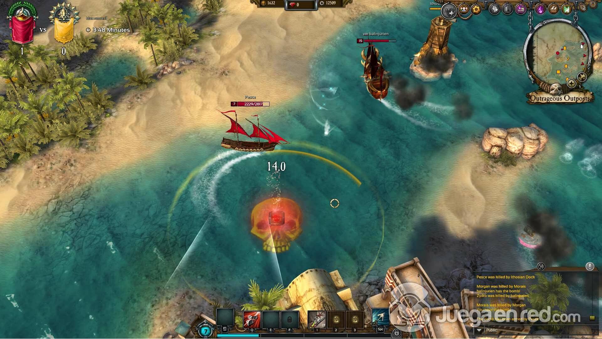 Hablando de la progresión de los personajes (barcos en este caso), el juego cuenta con el clásico sistema de misiones, pero también puedes conseguir experiencia y subir de nivel haciendo PvP. El sistema de progresión y personalización del juego es enorme y está muy bien hecho. Tienes un montón de posibilidades en las que invertir tus puntos y dinero. Puedes navegar por los arboles de investigación, para desbloquear y comprar nuevos barcos, tipos de munición, espacios de tripulación, cañones, expansiones de inventario entre otras muchas opciones. Cada una de las elecciones tiene un impacto directo en la maniobrabilidad y control de tu navío, por lo que puedes notarlo fácilmente, cuando hagas cualquier cambio. Además puedes invertir los puntos de habilidad que ganes al subir de nivel en uno de los tres arboles del especialización de tu clase. Estas tres ramas funcionan como subclases y ofrecen 3 modos