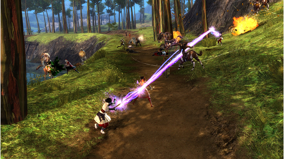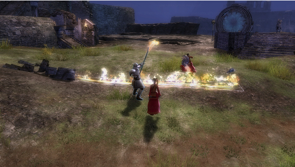No se me olvida comentaros una de las cosas que más me han gustado en la beta de Guild Wars, y es su sistema de combinación de habilidades. Con él podremos sacar el máximo partido a jugar en equipo. Por ejemplo, si somos un elementalista y lanzamos un muro de fuego, y luego un arquero dispara sus flechas a través del mismo, sus saetas se volverán incendiarias. Hay multitud de opciones y posibilidades por probar. Esta es una característica que a buen seguro potenciará en gran medida la jugabilidad en el PvP.