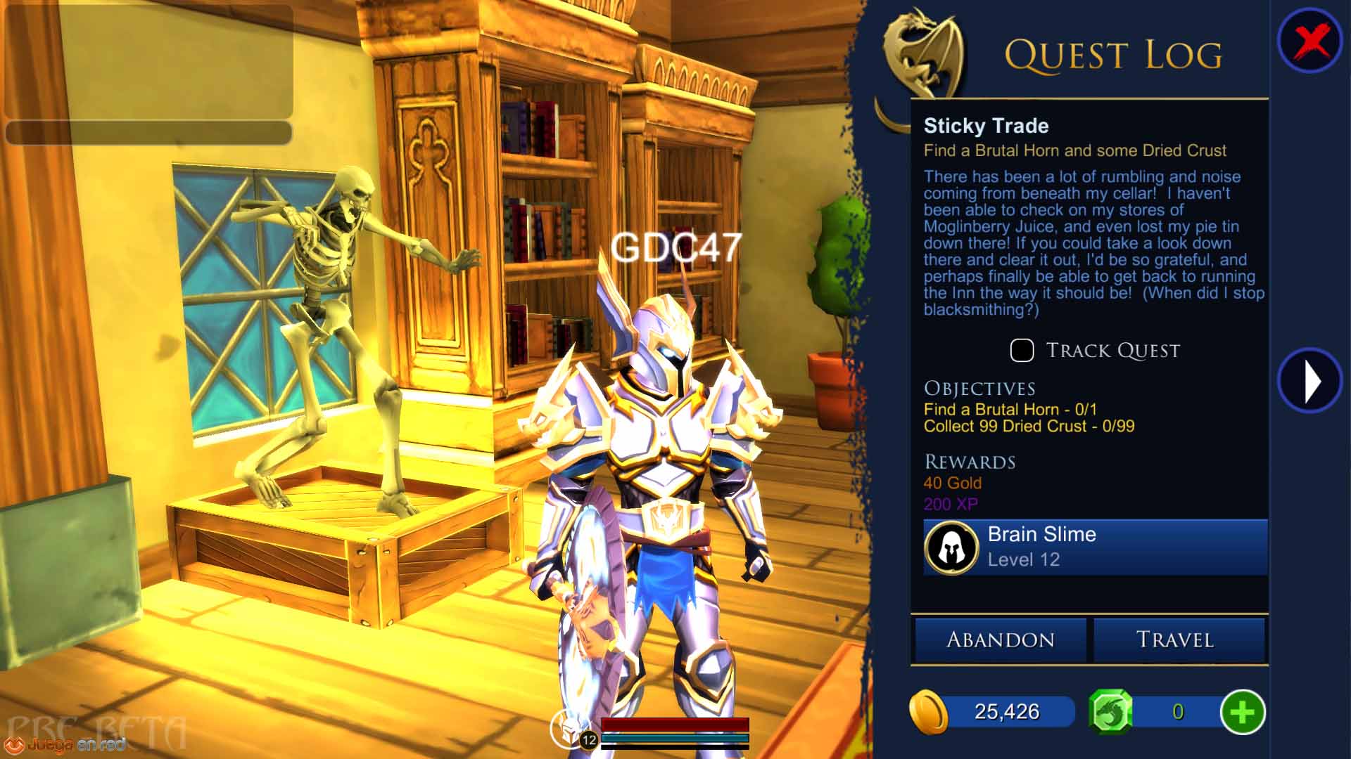 Tras dar una vuelta y adquirir algunas misiones, el propio juego nos guio a una cueva (difícil decir cuál, ya que no había mapa) a través de la opción de viajar instantáneamente que encontramos en el menú. No sabemos decir si es una opción del juego, de nuestra cuenta o de la misma beta, pero el caso es que pudimos viajar con un clic. En esa cueva nos topamos con un personaje que nos encargó matar a unos cuantos enemigos, y cuando la hicimos la propia misión se actualizó automáticamente con el siguiente paso, lo que nos gustó de veras, ya que no era necesario volver sobre nuestros pasos. Aunque no era así exactamente.