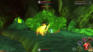 Cabe destacar la interfaz, claramente desarrollada con móviles y tabletas en mente, con botones inmensos que permiten utilizar las teclas o el ratón. Y es que este es uno de los aspectos más destacables de AdventureQuest 3D: capacidad multiplataforma. Independientemente de que uno sea usuario de PC, Mac, o juegue a través de un navegador o de su tableta o de su teléfono, siempre accederá al juego con su cuenta y su personaje. Se trata de una faceta espectacular y que nos obliga a preguntarnos qué habrá sacrificado Artix por el camino para conseguir aunar todas las versiones posibles en un único juego. El hecho de que haya tenido que ser diseñado para utilizarse con teclado y ratón y con pantallas táctiles probablemente hace caer al juego en el saco “casual” y uno no debiera esperar un combate especialmente complejo.