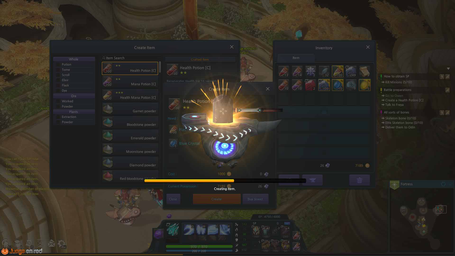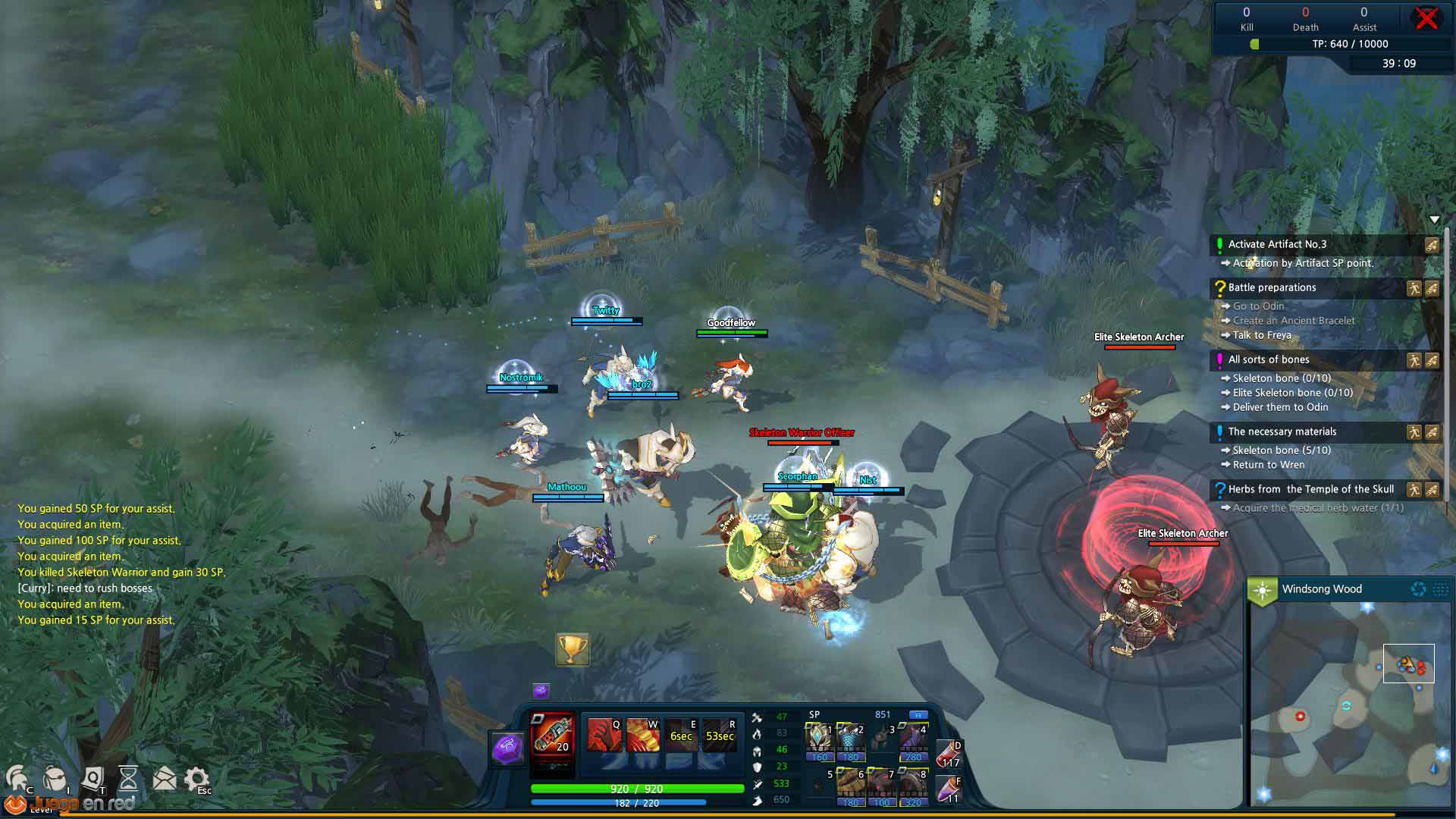 El componente MOBA que pudimos probar fue un encuentro en una única línea en la que nos enfrentamos a dos enemigos, cuatro torres (dos aliadas, dos enemigas), campamentos neutrales a un lado del camino y jugadores tratando de avanzar hasta el nexo contrario. Hasta entonces nuestras partidas habían sido contra la IA, pero los jugadores pueden unirse a una partida ya comenzada y asumir el puesto de los enemigos controlados hasta entonces por la IA. Algo importante que no podemos obviar, a modo de aviso, es que el PvP de este tipo no funciona exactamente como el PvP en mundo abierto. No hay restricción de nivel, por lo que uno puede encontrarse luchando contra jugadores de nivel máximo (30 actualmente, pero durante la beta estaba limitado a 27). Y en estas nos vimos más de una vez, luchando con y contra gente del nivel más alto. Si a esto se le añade la posibilidad de “campear” la zona de spawn (sin opción de aparecer en un sitio distinto), podemos toparnos con batallas realmente frustrantes.
