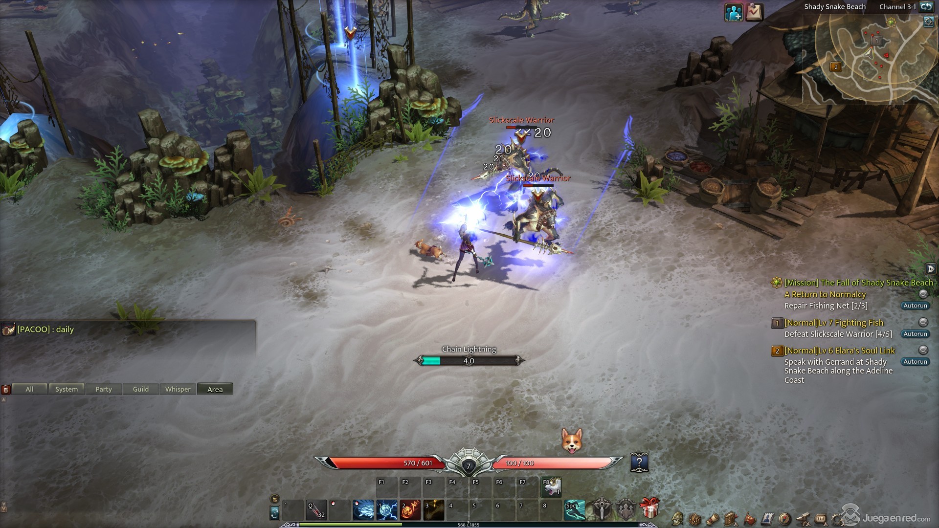 El combate está particularmente bien hecho, y puedes mover a tus personajes con las teclas WASD o usando el botón izquierdo del ratón, mientras que las habilidades se activan con las teclas numéricas y se apuntan con el ratón. También usamos la barra espaciadora para esquivar los ataques enemigos. El ritmo del juego es frenético y hace que el juego sea muy divertido, ya que disfrutas muchísimo descuartizando a tus enemigos, lanzándoles relámpagos o disparándoles cañonazos que literalmente los despedazan.