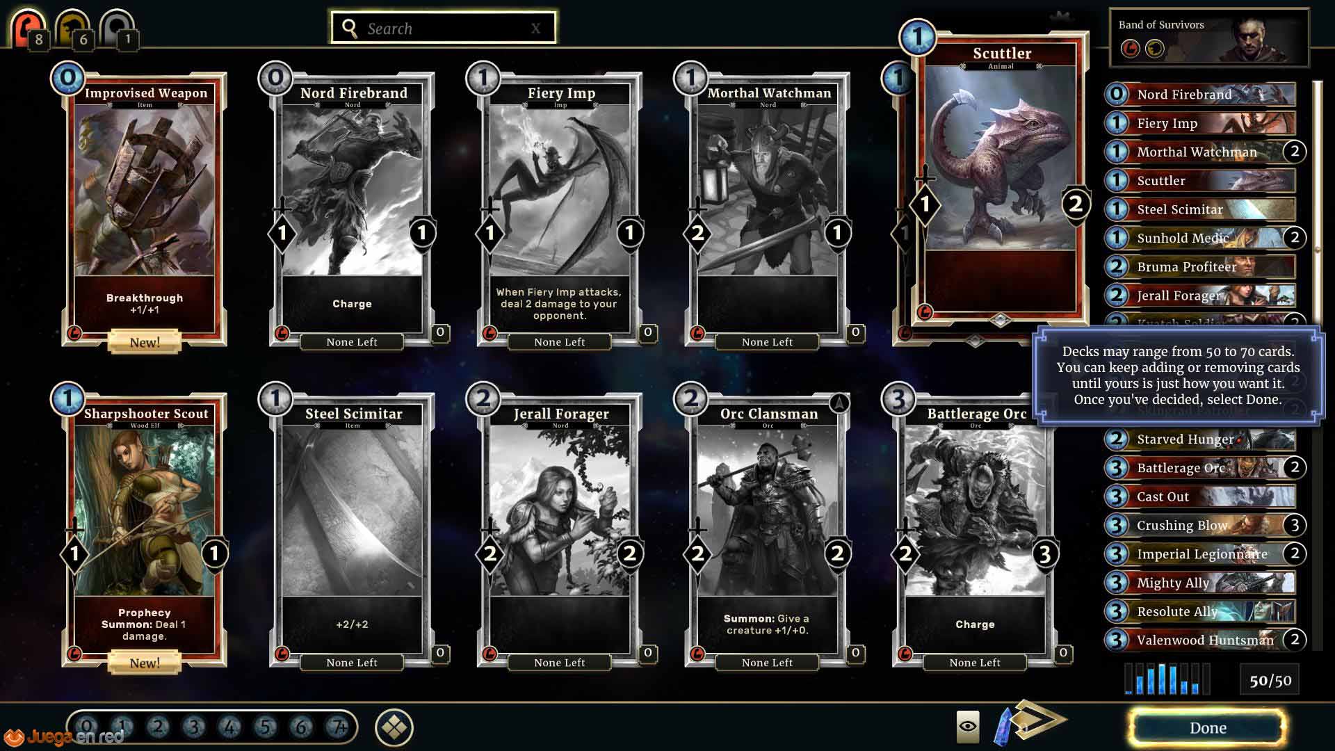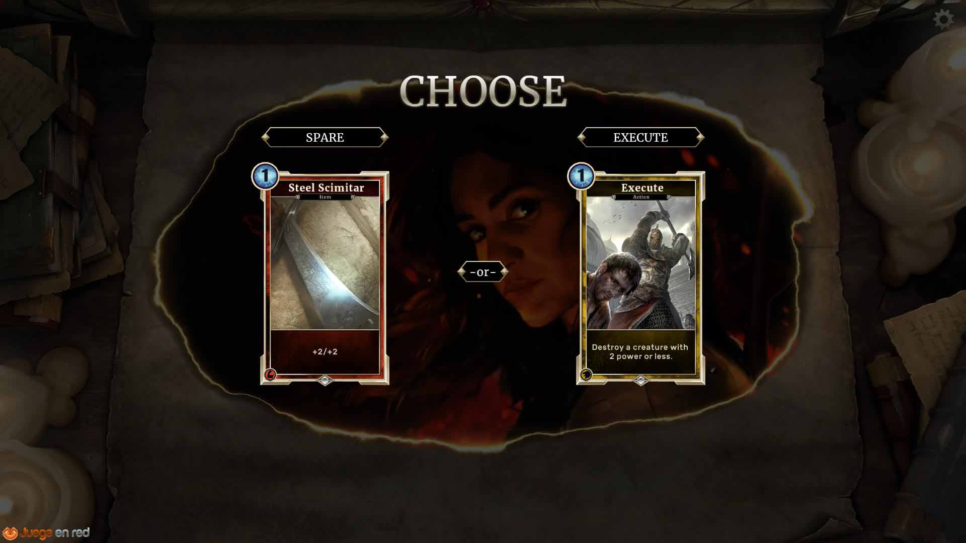 En cuanto a la campaña, a medida que se progresa se desbloquean nuevas cartas que después podemos añadir en nuestro propio mazo. En la campaña hay cierto componente RPG, con misiones que permiten escoger de vez en cuando cómo avanzamos en la historia. Por ejemplo, tras una batalla contra unos lobos, nos topamos con una cría de lobo que podíamos quedarnos o matar. Dependiendo de la elección, se obtienen unas cartas u otras. Otras misiones permiten mejorar cartas de una manera u otra, alterando su poder en función de las decisiones tomadas para completar la historia. La campaña es muy divertida y no excesivamente larga, aunque siendo un juego Elder Scrolls uno espera encontrarme algo mucho más complejo y dinámico. Esperamos que en el futuro se añada contenido para ampliarla.