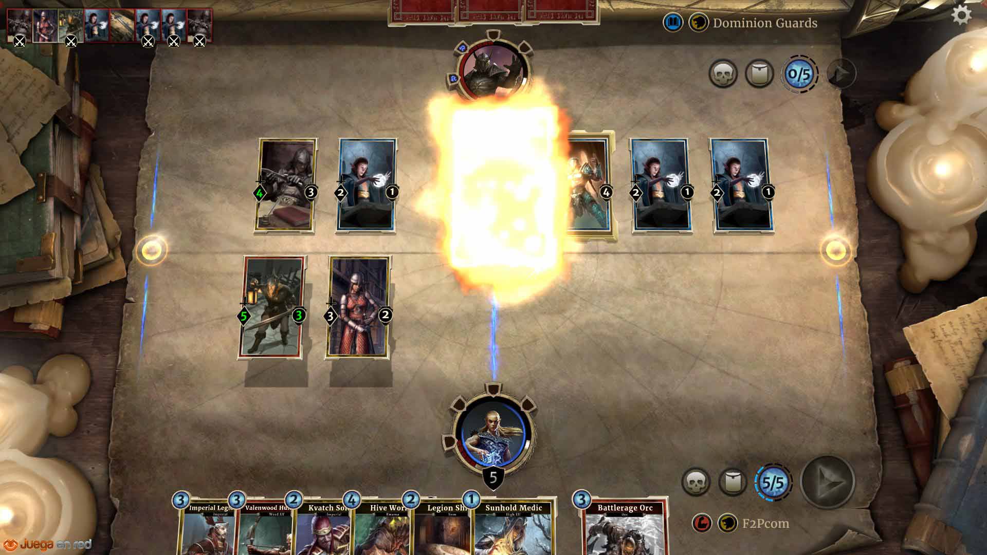 Presuponemos que aquellos que lean este artículo tienen un conocimiento básico de las mecánicas de juego del género (cartas de criaturas, funcionamiento de la energía y requisitos para invocar cartas, tipos de cartas especiales de acción, objetivo de reducir la vida del contrincante a cero, etc.), así que no entraremos demasiado en ello. Vamos a centrarnos en lo que hace especial a The Elder Scrolls: Legends.