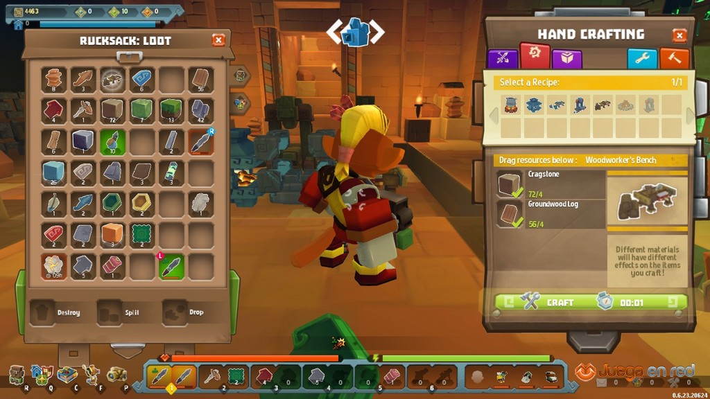 Para empezar, SkySaga nos ofrece la posibilidad de escoger entre diferentes razas: hombres mono, hombres león, hombres dragón y hombres normales (todos con versión femenina y masculina); y estas pueden personalizarse de la manera que cabe esperar en un MMO. Una vez determinado el aspecto, debemos escoger cómo será el entorno de nuestra Isla, nuestro lugar personal en el universo: boscoso, desértico o selvático. Esta isla es la base de operaciones en la que podremos construir y destruir distintas estaciones de trabajo y crear lo que se nos antoje. Esto ya supone un cambio respecto a Minecraft, donde habitualmente apareces en el medio de la nada y tienes que sobrevivir construyendo un refugio antes de que aparezcan los monstruos durante la noche.