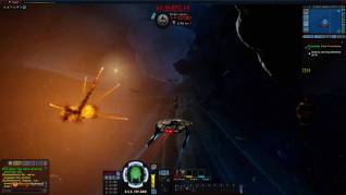 El movimiento en el espacio (y también el combate en este entorno) es mucho más fluido que el combate en tierra. No es de extrañar, dado que el combate espacial era el elemento esencial cuando se lanzó el juego. El combate en tierra llegó después, y nunca se ha desprendido de la sensación de ser más bien un añadido. En el espacio disponemos de control en 360 grados con las teclas W, A, S y D, pero la nave siempre tiende a estabilizarse horizontalmente, por lo que uno no puede invertir el vuelo. Lo que importa en el espacio es la posición. La nave cuenta con escudos frontales, laterales y traseros, y todos ellos tienen su propio nivel de vida. Las armas también tienen posiciones determinadas, como por ejemplo los torpedos de fotones, que requieren que el objetivo esté frente a nosotros. Es habitual tener que moverse de manera constante para evitar el daño y tratar de acabar con las naves enemigas.
