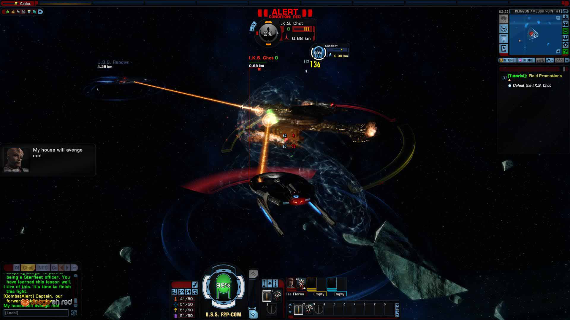 Sin destripar la historia, tras el tutorial pasamos a ocupar la silla del Capitán, aunque es difícil determinar el momento exacto en el que este termina y comenzamos a pilotar nuestra nave en espacio abierto. Fuera como fuese, ahora íbamos a la caza de la partida Klingon que nos asaltó.