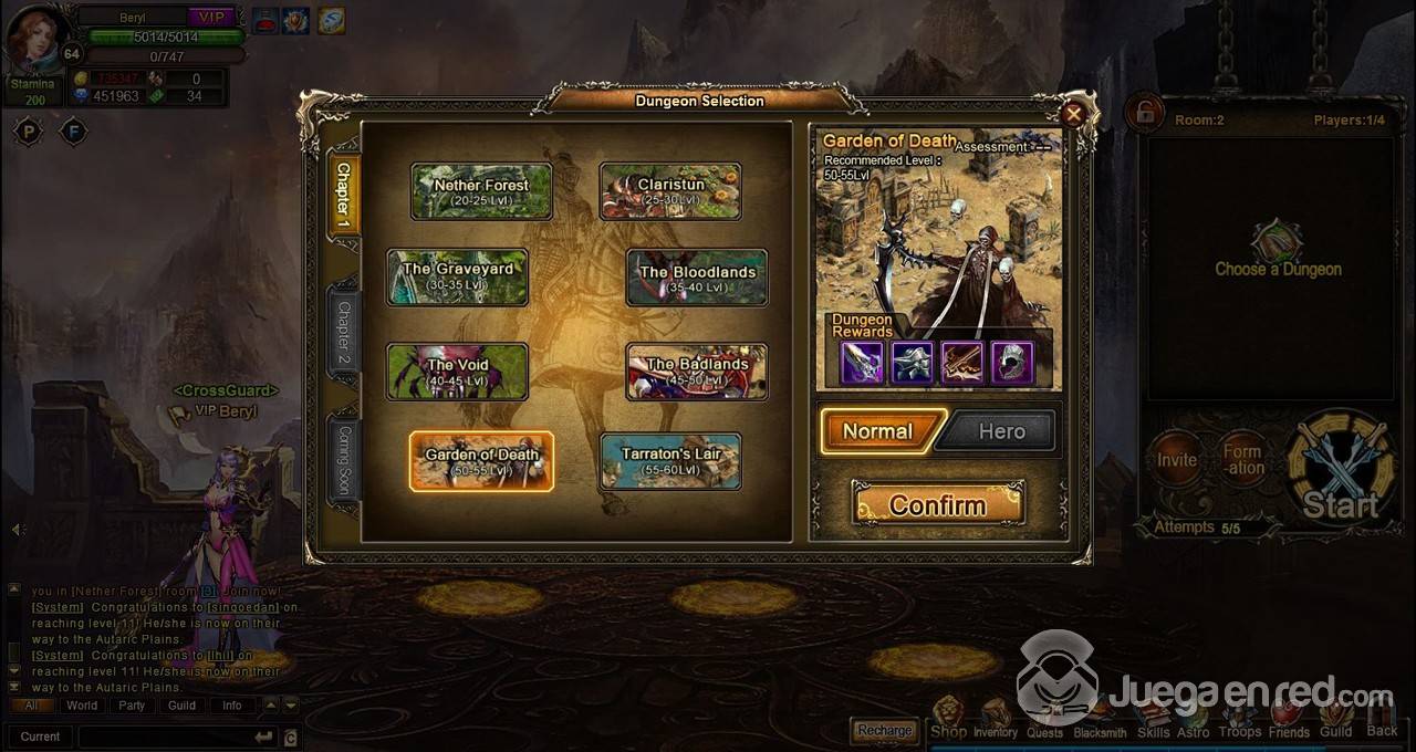 Nuestro primer vistazo no nos llevó a ser muy optimistas debido a su estilo gráficos y las decenas de iconos que ofrecían objetos gratis, oro gratis y un tremendo incremento de la velocidad a la que se gana nivel, lo que presagiaba una experiencia similar a la que hemos tenido que padecer otras veces. En la selección de personajes puedes elegir tres personajes/clases, cada uno con versión masculina y femenina: Caballero, Mago y Arquero, aunque ninguna descripción determinaba las diferencias entre ellos.