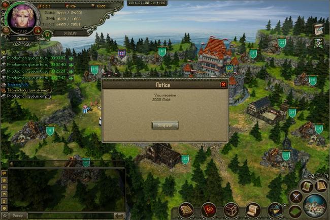 Se te confirmará que has recibido 2000 monedas de oro: