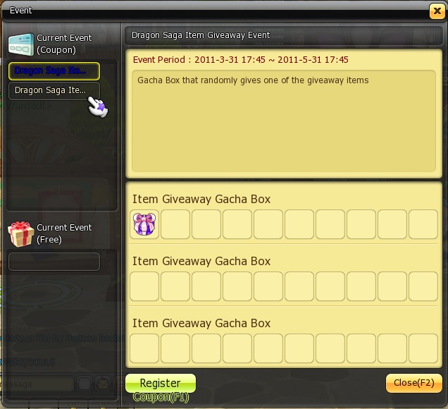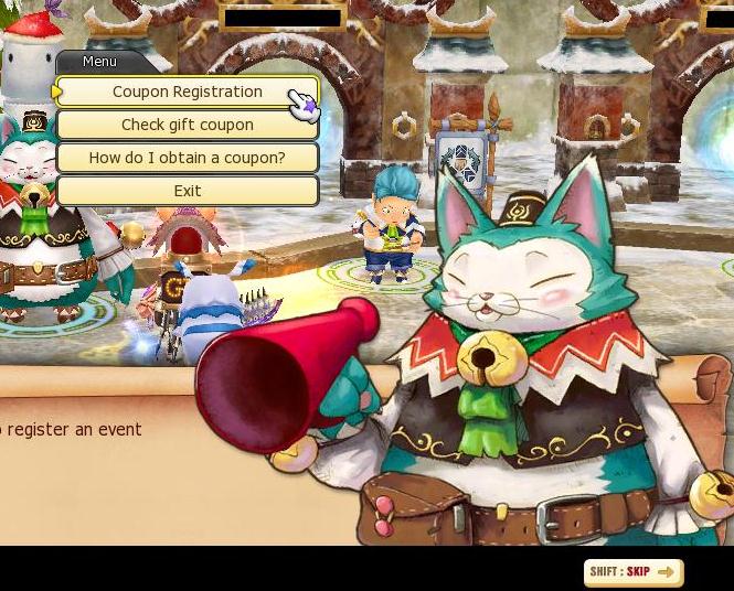 Recibirás tu clave a través de un email. Entra en Dragon Saga, busca a GATO NPC en Port Of Winds y pincha sobre "Coupon Registration".