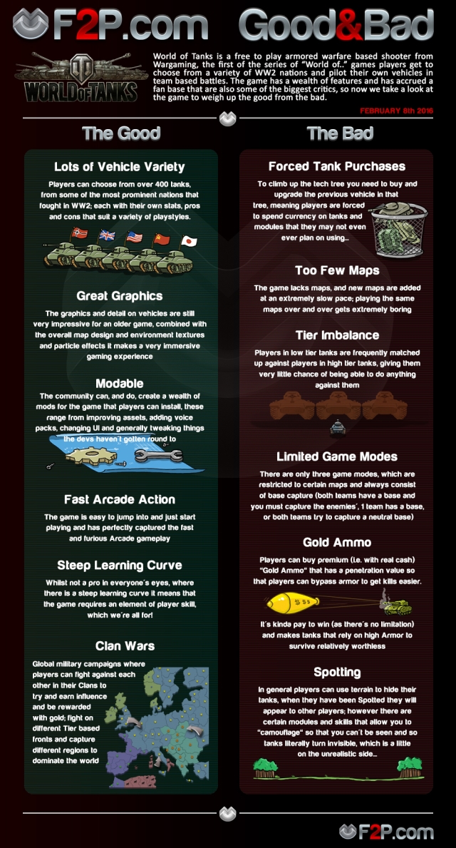 Compras obligadas – Si uno quiere progresar en su árbol tecnológico, se ve obligado a desbloquear tanques, comprando vehículos y después mejorando los anteriores. Esto implica que los jugadores están obligados a invertir en la compra de tanques aunque no los quieran.